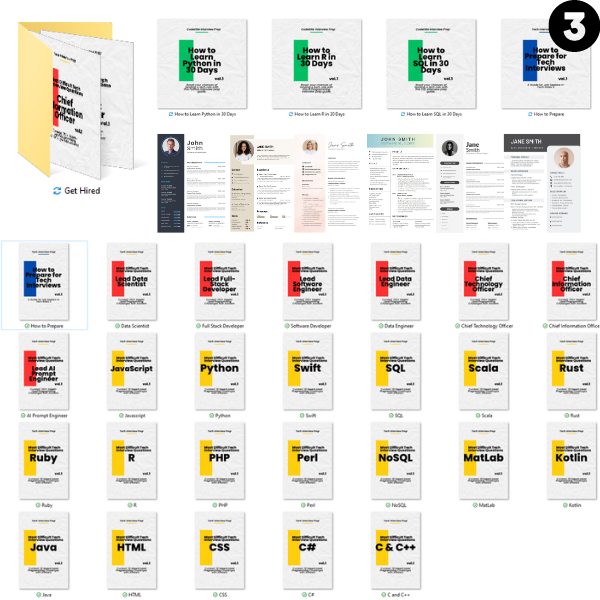 - Save 1,000s of hours -β°πͺ Curated collection of 450+ expert-level technical interview questions for various programming languages. Includes 6 executive resume templates. Suitable for all technical positions. How To Prepare For a Technical Interview. Survival Guide: Succeeding in Your First 90 Days in a Tech Role- Frameworks and Methodologies.
